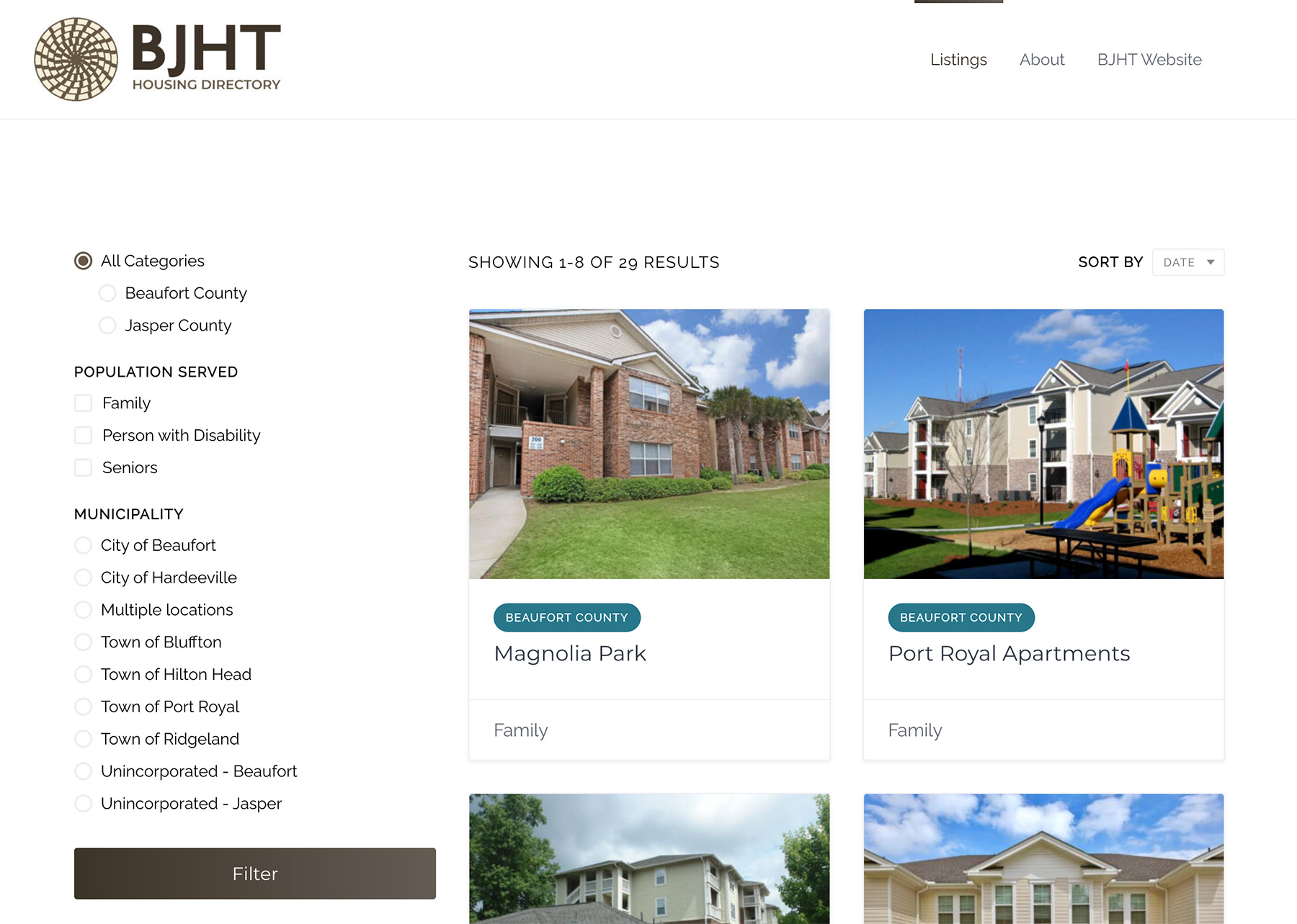 BJHT is preparing to launch a new online Housing Directory designed to make it easier for residents, employers, service providers, and community partners to identify workforce and affordable housing options in Beaufort and Jasper Counties.